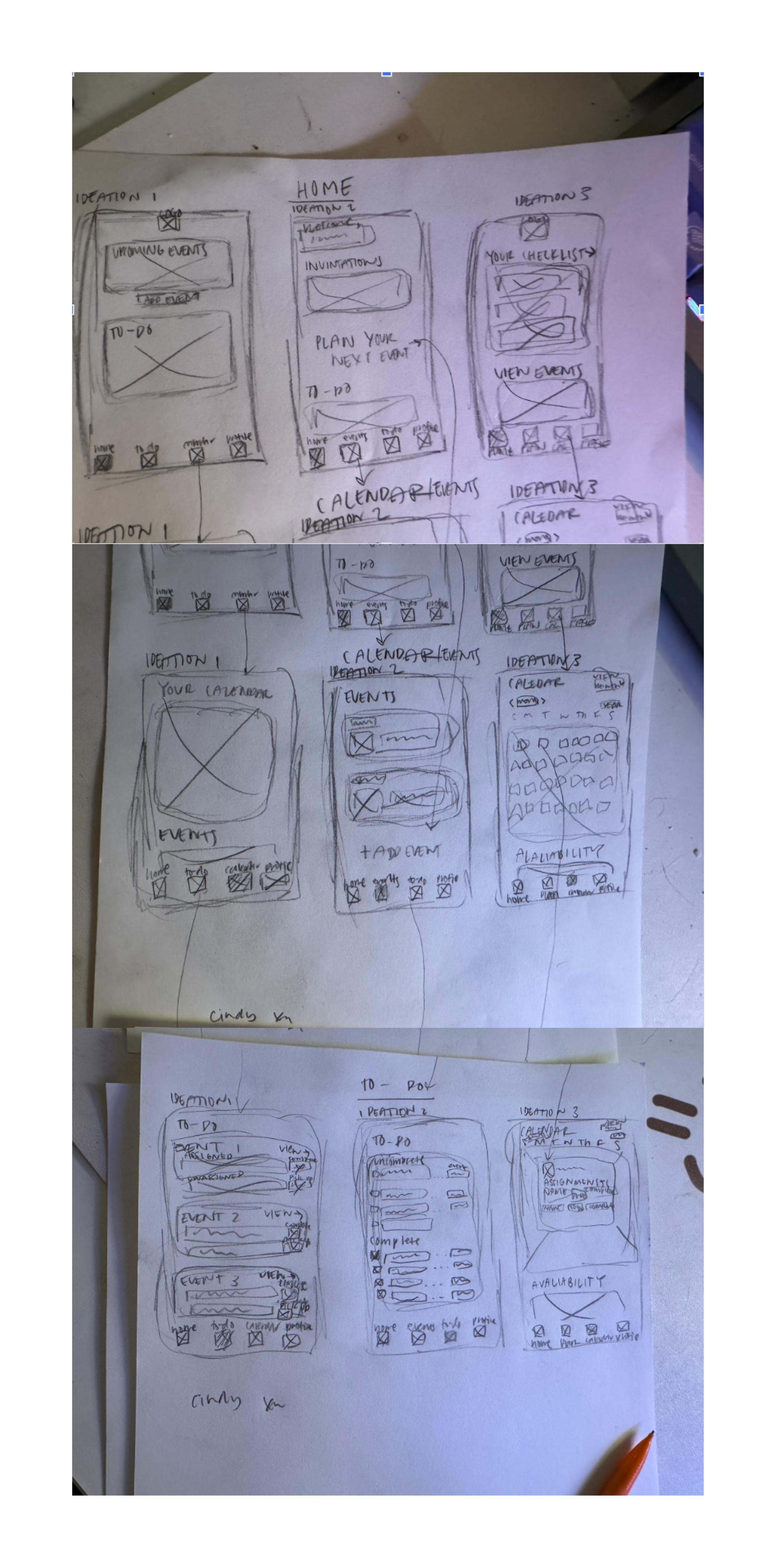 Through ideation and low-fidelity prototyping, we explored multiple interface concepts emphasizing usability and visual clarity. Usability testing sessions helped refine our design to feature customizable task lists, collaboration features, and event timeline visualization. The final high-fidelity prototype balanced aesthetics and functionality, providing a seamless experience for users at all planning stages. This project deepened my understanding of human-centered design, iterative prototyping, and user research synthesis. It also demonstrated the power of collaborative ideation in translating user insights into actionable design solutions that address real-world needs.