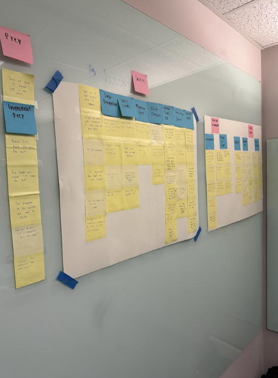 The first step after our team was formed was to come up with a team name, which we ever so cleverly decided on “A-Playa-Bowl Solution”. After that, we determine our roles and meeting times for the rest of the semester. As project owner, I was the main point of contact between our team and PBCH, and was in charge with communications between us and the owners, managers, and employees to schedule meetings and interviews. We followed a Scrum framework with one week cycles. While all of us would conduct contextual interviews, I was in charge of obtaining artifacts as an employee at PBCH. Other responsibilities I took on included organizing our final affinity diagram, creating the physical space model, and delivering all physical deliverables to the owners of PBCH.